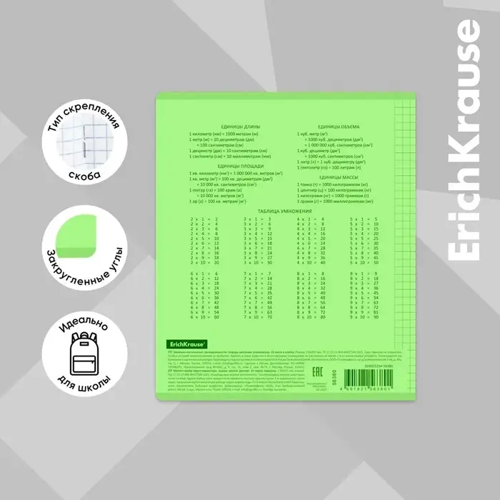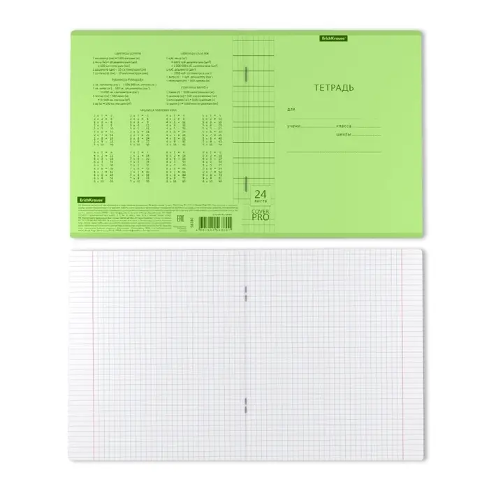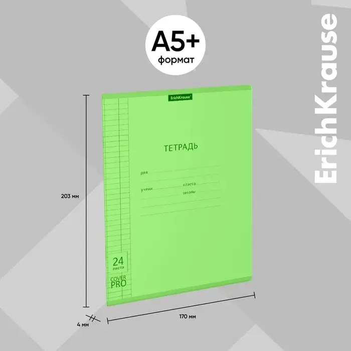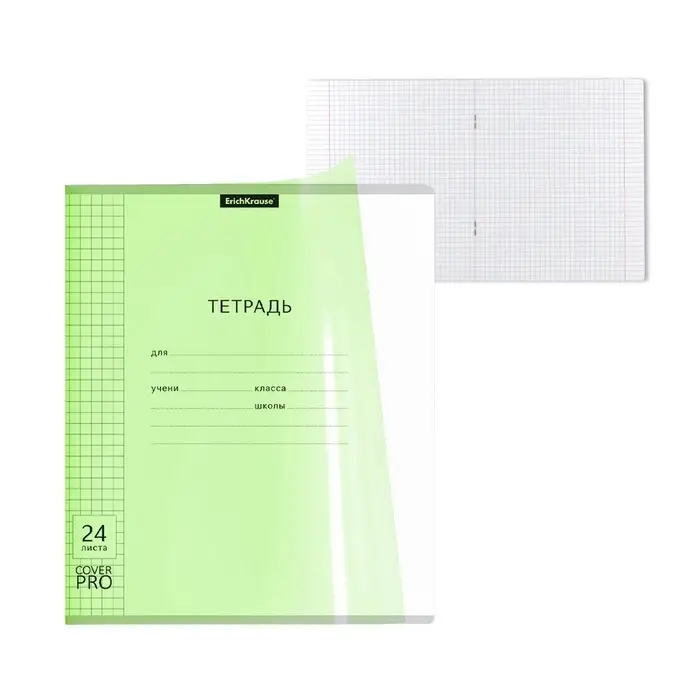 Тетрадь 24 листа, ErichKrause «Классика CoverPrо Neon», в клетку, пластиковая обложка, блок офсет, 100% белизна, зелёная