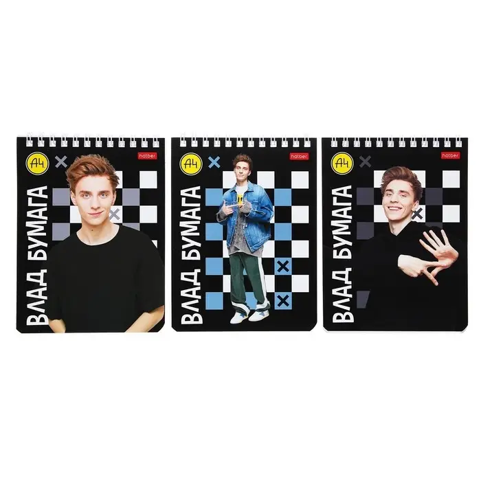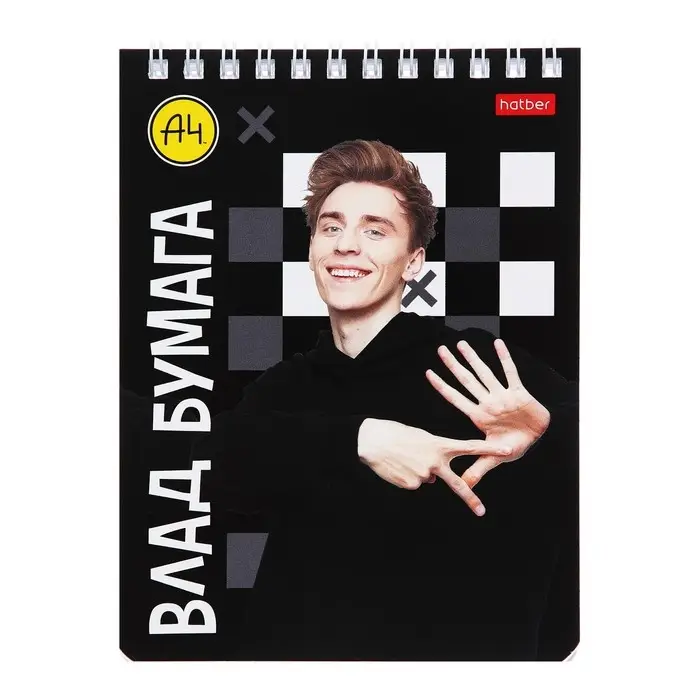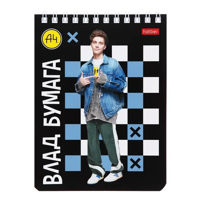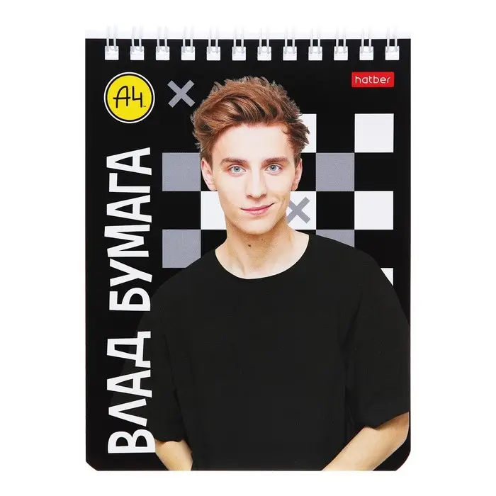 Блокнот А6 40 листов в клетку на гребне "Влад А4", обложка мелованный картон, УФ-лак, блок 60 г/м2, 5В МИКС