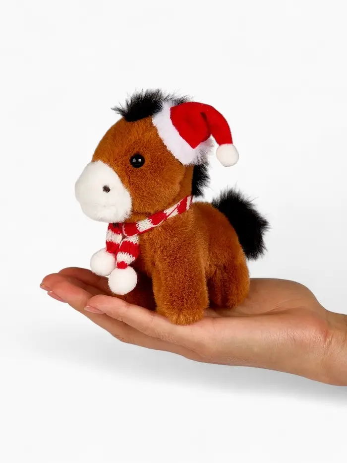 POMPOSHKI мягкая игрушка Лошадка, в шапочке, коричневая