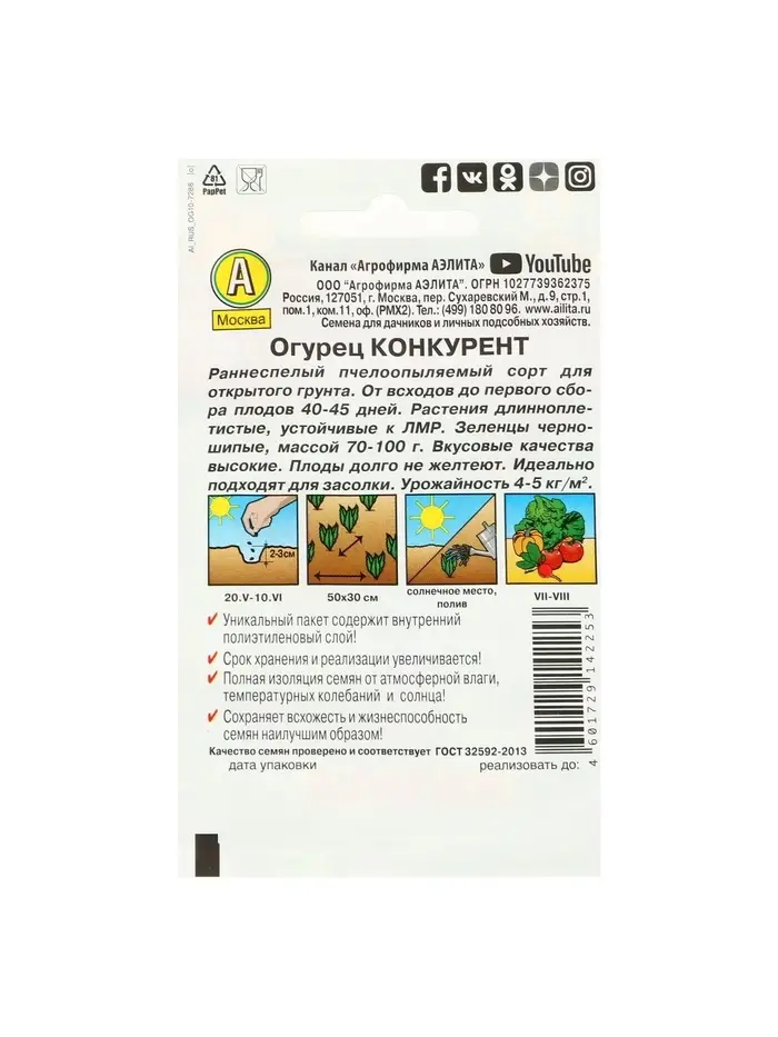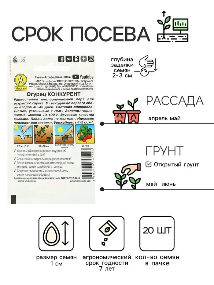 Семена Огурец "Конкурент", Лидер, 20 шт