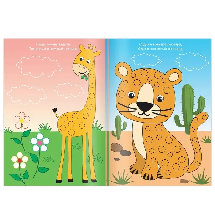 Пальчиковая раскраска «Весёлые животные», А5, 16 стр., Синий трактор