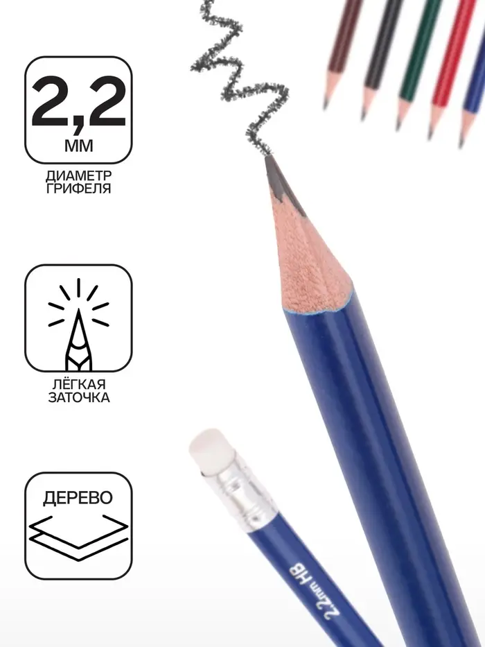 Классический трехгранный чернографитный карандаш из отборной древесины с ластиком, твердость НВ. Специальная пропитка древесины и сплошная проклейка грифеля обеспечивает высокую ударопрочность. Мягкая древесина и идеальная центровка грифеля гарантируют легкую заточку с экономным расходом карандаша. Грифель диаметром 2.2 мм не царапает бумагу и не крошится. Ластик карандаша средней жесткости изготовлен из экологически чистого и гипоаллергенного материала термопластичной резины (TPR). Не содержит ПВХ. Длина 188 мм.