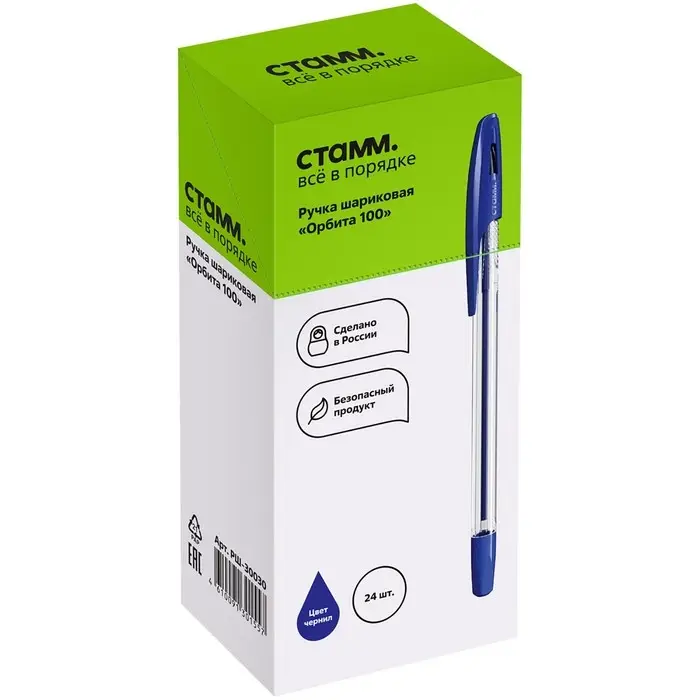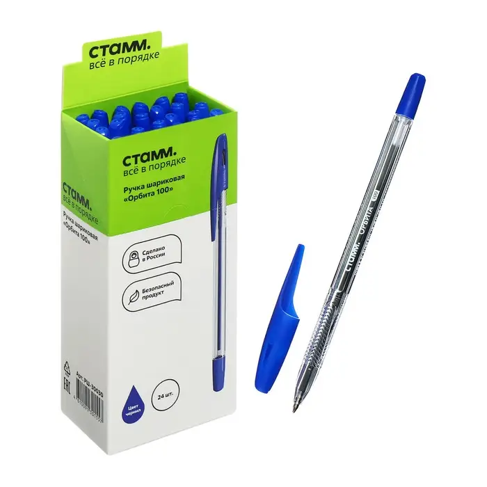 Шариковая ручка СТАММ "Орбита 100" изготовлена из качественных материалов и идеально сочетает в себе функциональность и современный дизайн. Благодаря классической шестигранной форме корпуса ручка комфортно лежит в руке. Эргономичная зона захвата с рифлением препятствует скольжению пальцев, что делает ее использование максимально комфортным. Ручка оснащена вентилируемым колпачком, который обеспечивает дополнительную безопасность при использовании детьми. Прозрачный корпус позволяет контролировать расход чернил. Диаметр пишущего узла: 0,7 мм, толщина линии письма: 0,5 мм. Длина стержня: 142 мм. Износостойкий наконечник и чернила на масляной основе обеспечивают мягкое, ровное и комфортное письмо. Ручки поставляются в картонной коробке по 24 штуки.