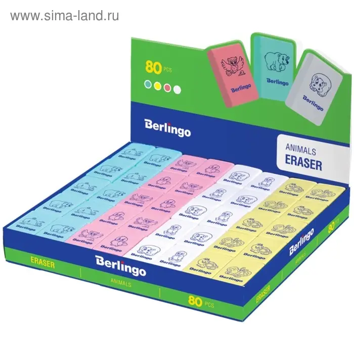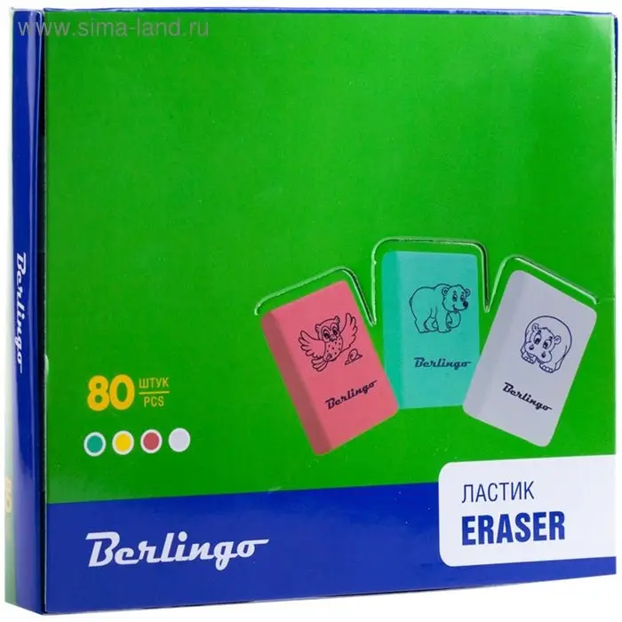 Ластик выполнен из высококачественной термопластичной резины. Каждый ластик имеет штрихкод. Упаковка в дисплей. 4 цвета ассорти.