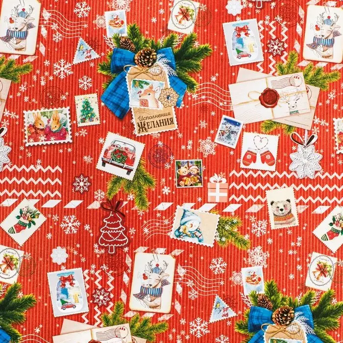Упаковочная бумага на новый год «Почтовые открытки», 70 х 100 см, глянцевая