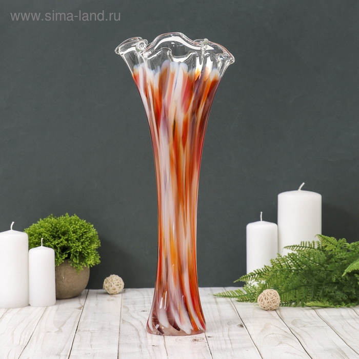Ваза "Волна" 40 см, красно-бело-марганцевая