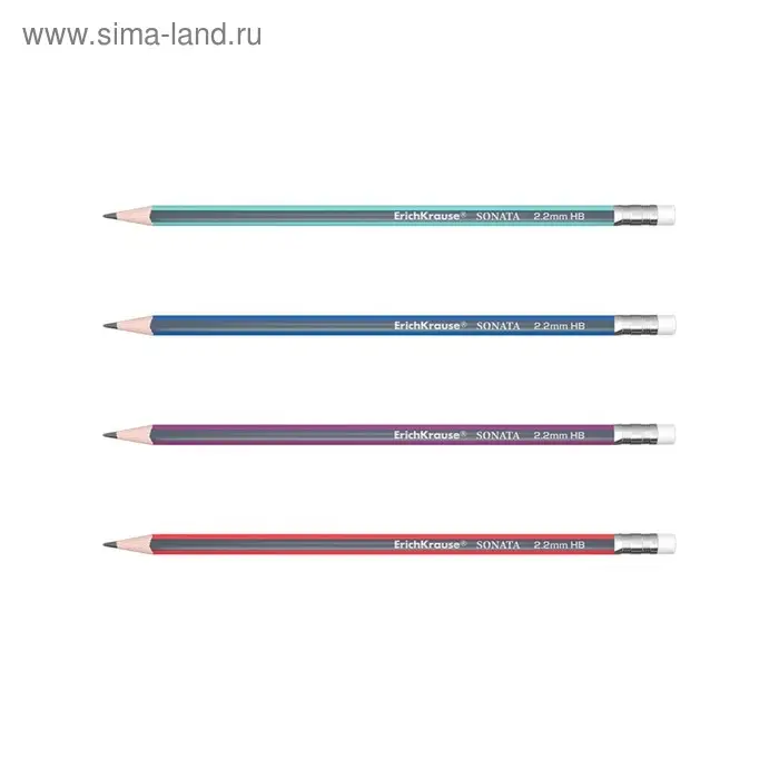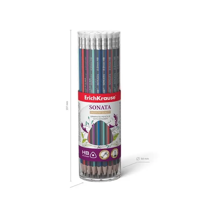 Карандаш чернографитный с ластиком ErichKrause "Sonata", HB, грифель d=2.2 мм, дерево, трёхгранный в тубусе, микс