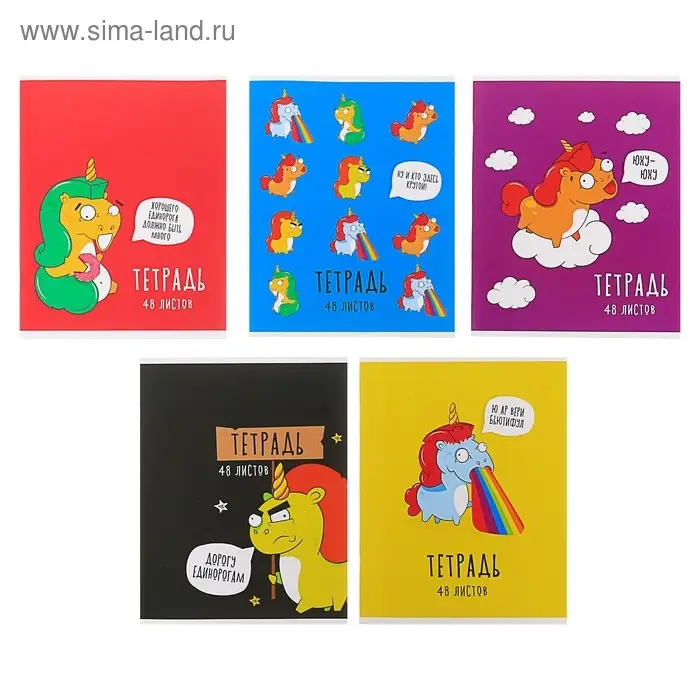 Тетрадь 48 листов в клетку Calligrata «Единороги-2», обложка мелованный картон, МИКС