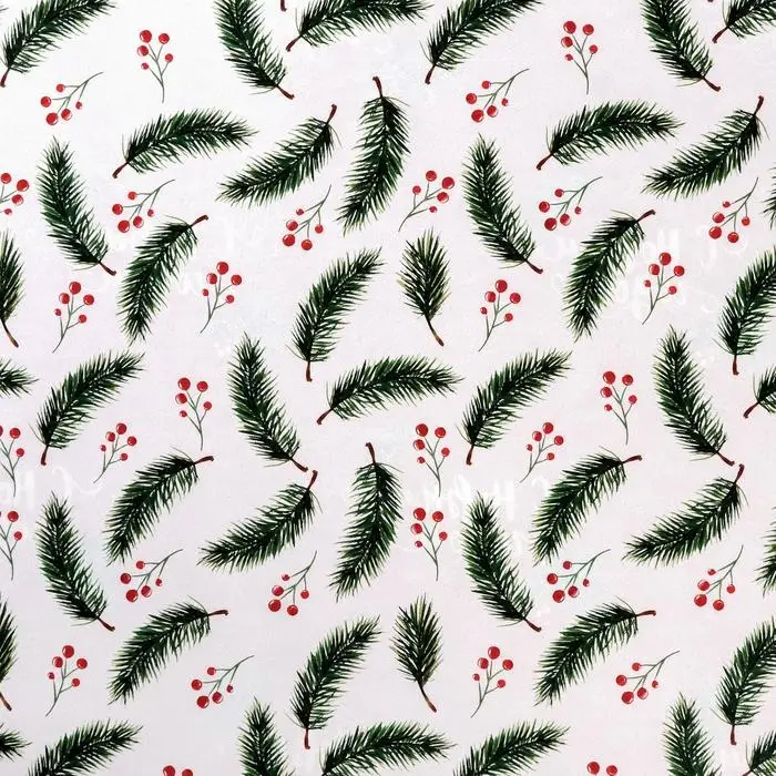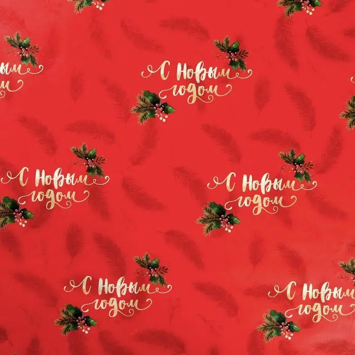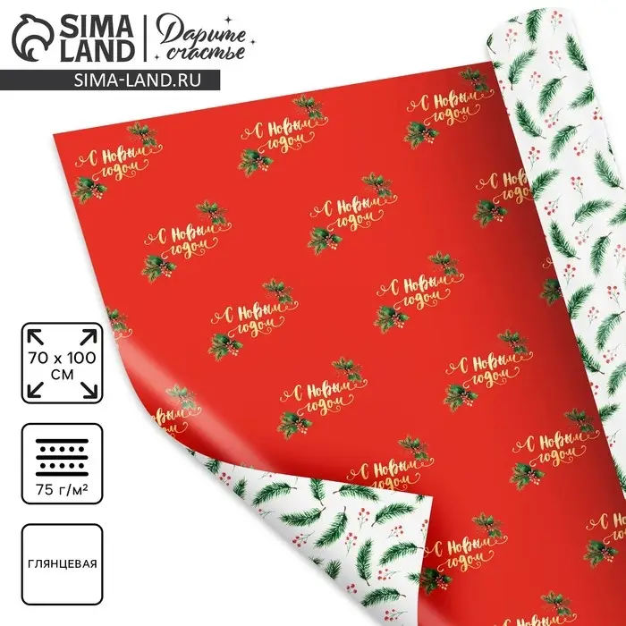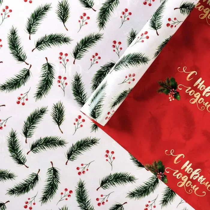 Упаковочная бумага на новый год глянцевая двусторонняя «Новогодние ветви», 70 х 100 см