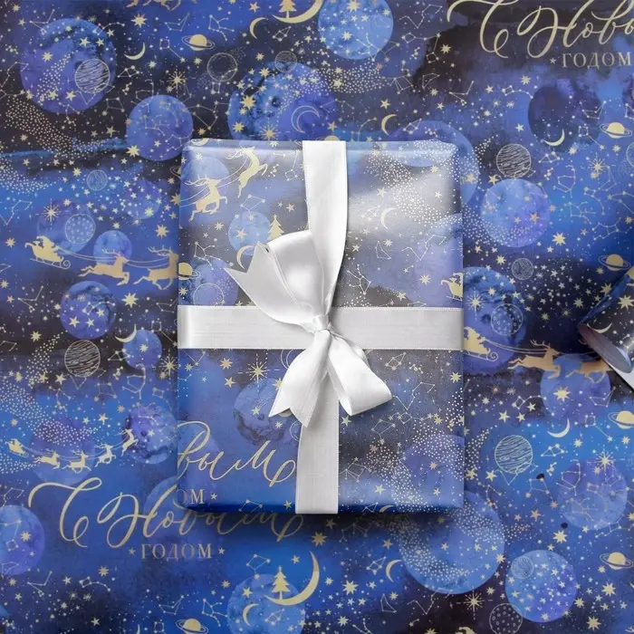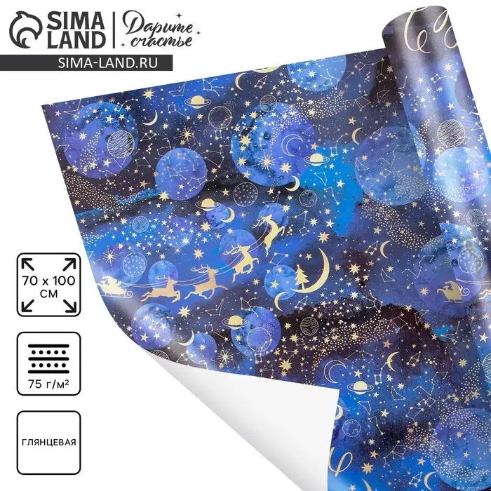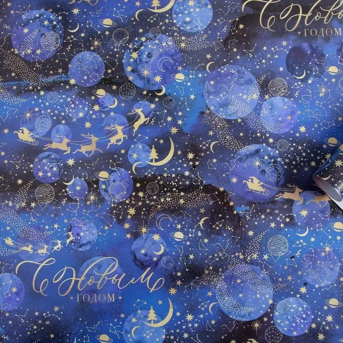 Упаковочная бумага на новый год «Новогодний космос», 70×100 см, глянцевая