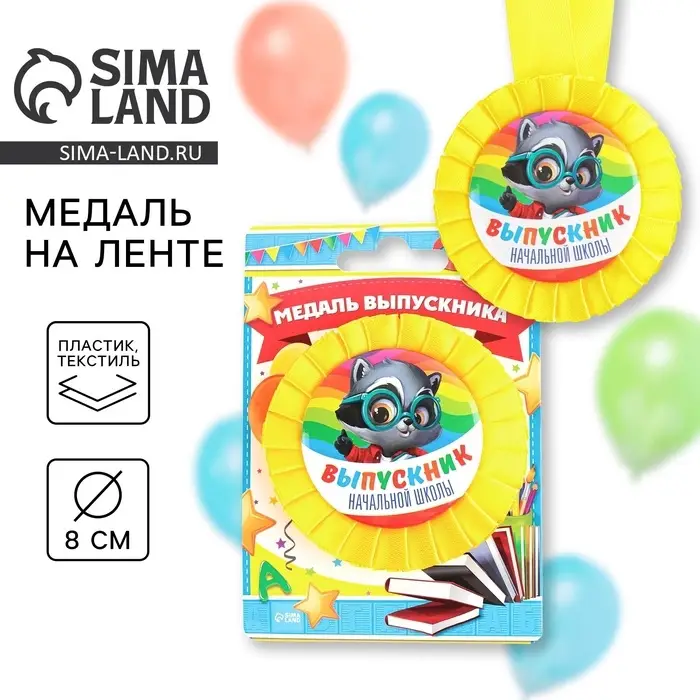 Медаль на ленте на выпускной «Выпускник начальной школы», d=8 см