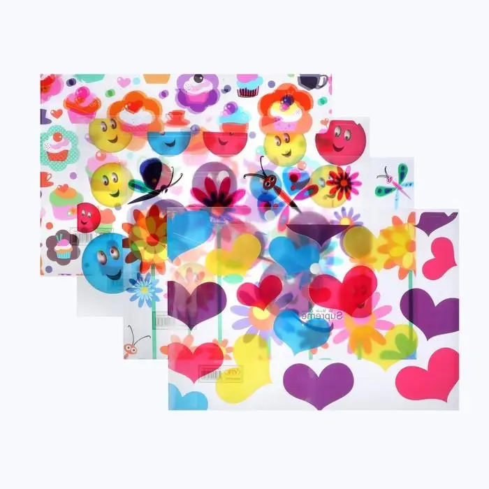Папка конверт на кнопке А4, 180 мкм, Calligrata, полупрозрачная, с вертикальным расширением, микс