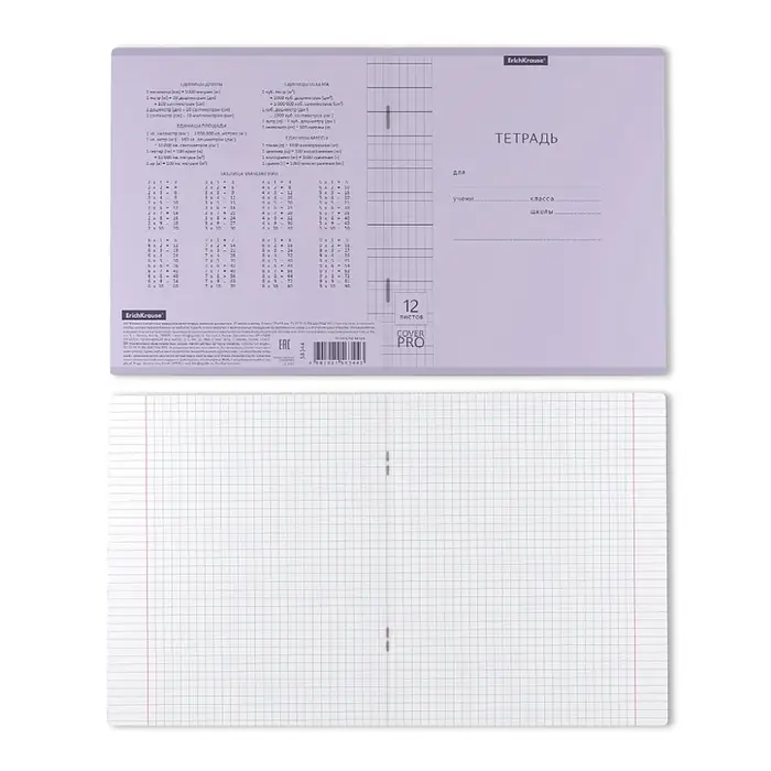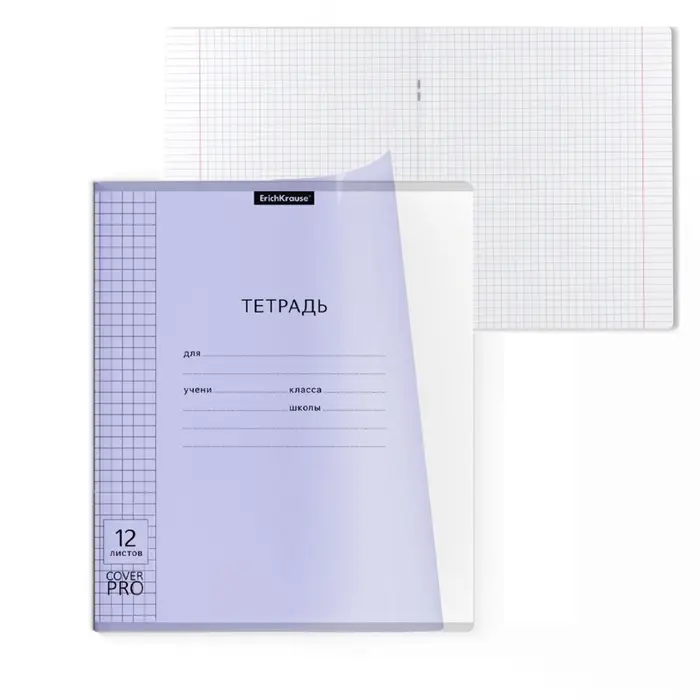 Тетрадь 12 листов, ErichKrause «Классика CoverPrо Pastel», в клетку, пластиковя обложка, блок офсет, 100% белизна, сиреневая