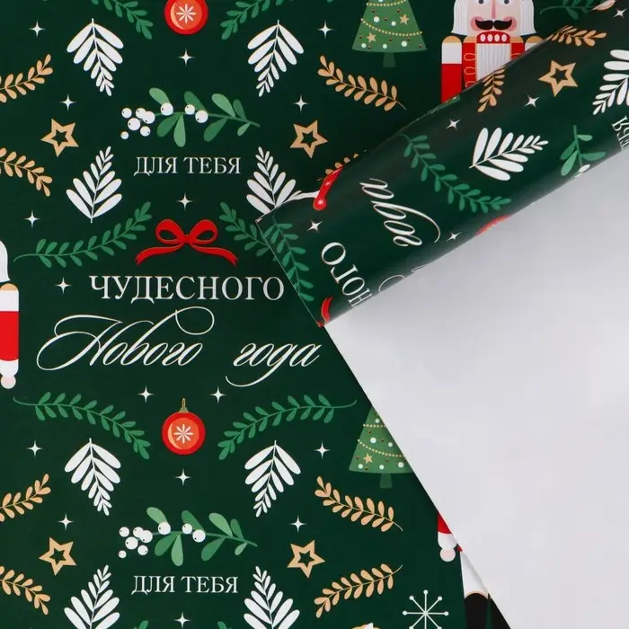 Упаковочная бумага на новый год «Щелкунчик», 70 х 100 см, глянцевая