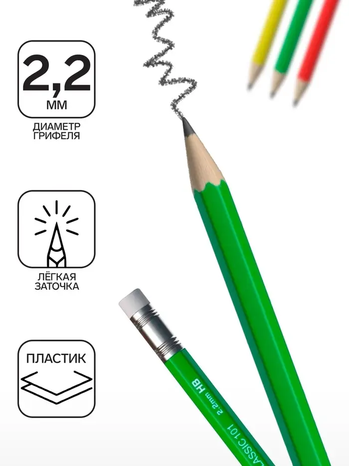 - Благодаря специальной технологии изготовления карандаша методом экструзии грифель надежно фиксируется к корпусу.