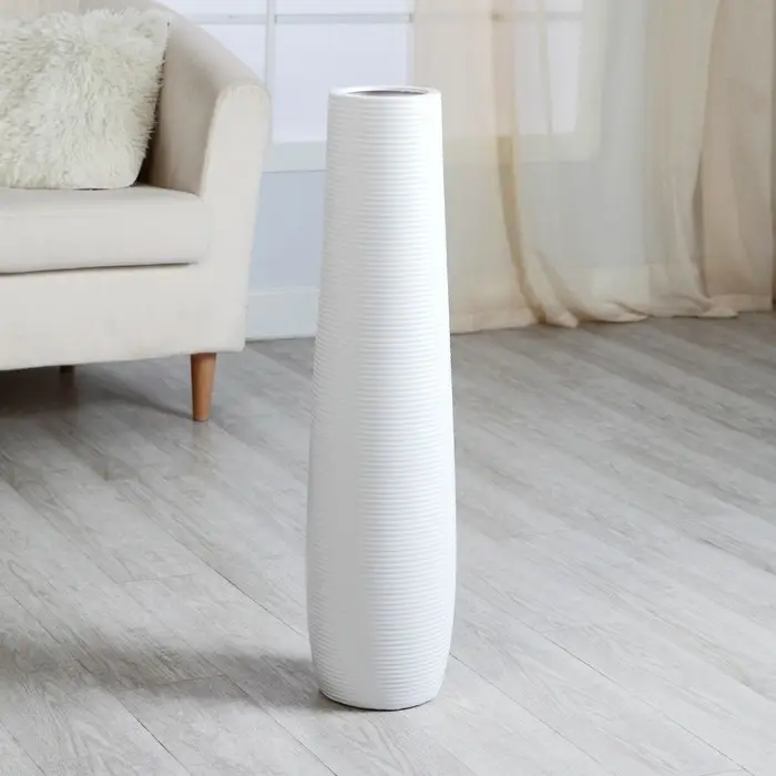 Ваза керамика напольная «Силестайн», полоски, напольная, d вн.-10 см, 13×74 см, белый