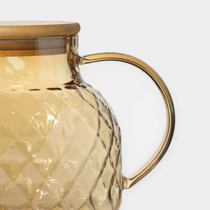 Чайник заварочный стеклянный BellaTenero «Круиз», 1 л, с бамбуковой крышкой и металлическим фильтром, цвет золотой