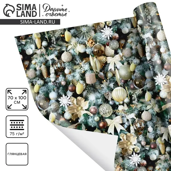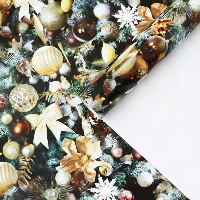 Упаковочная бумага на новый год «Новогодний вальс», 70 х 100 см, глянцевая