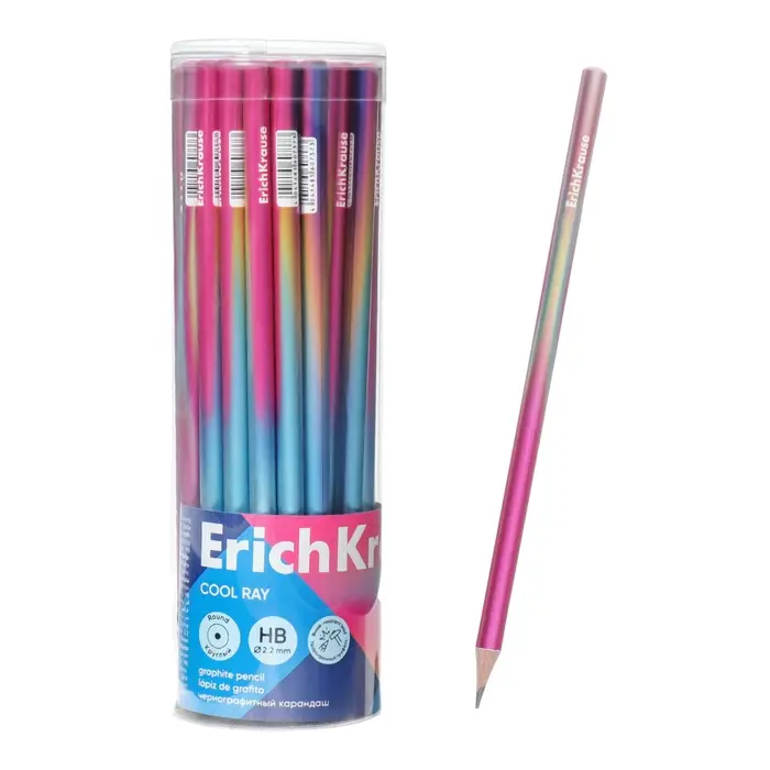 Карандаш чернографитный Erich Krause «CoolRay» HB, дерево. грифель, d=2.2 мм, корпус круглый, металлик МИКС