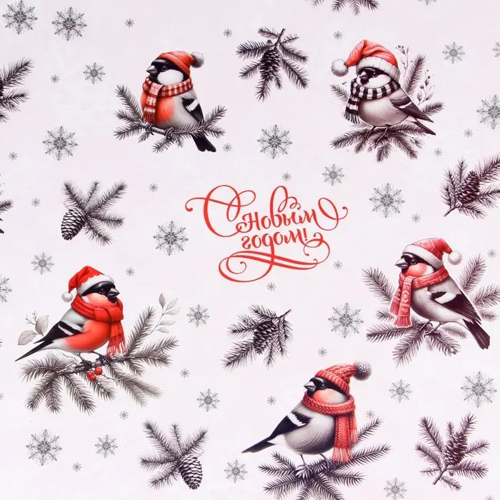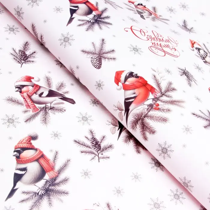 Бумага упаковочная «Снегири», глянец, двусторонняя, 80 г/м² , 70×100 см