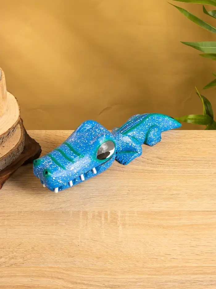 Шкатулка "Крокодильчик" 25х8х7 см, дерево, цв. синий