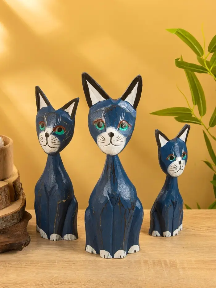 Сувенир интерьерный "Кошачья семья" (набор 3 шт: 30,25 и 20 см) дерево, цв. синий