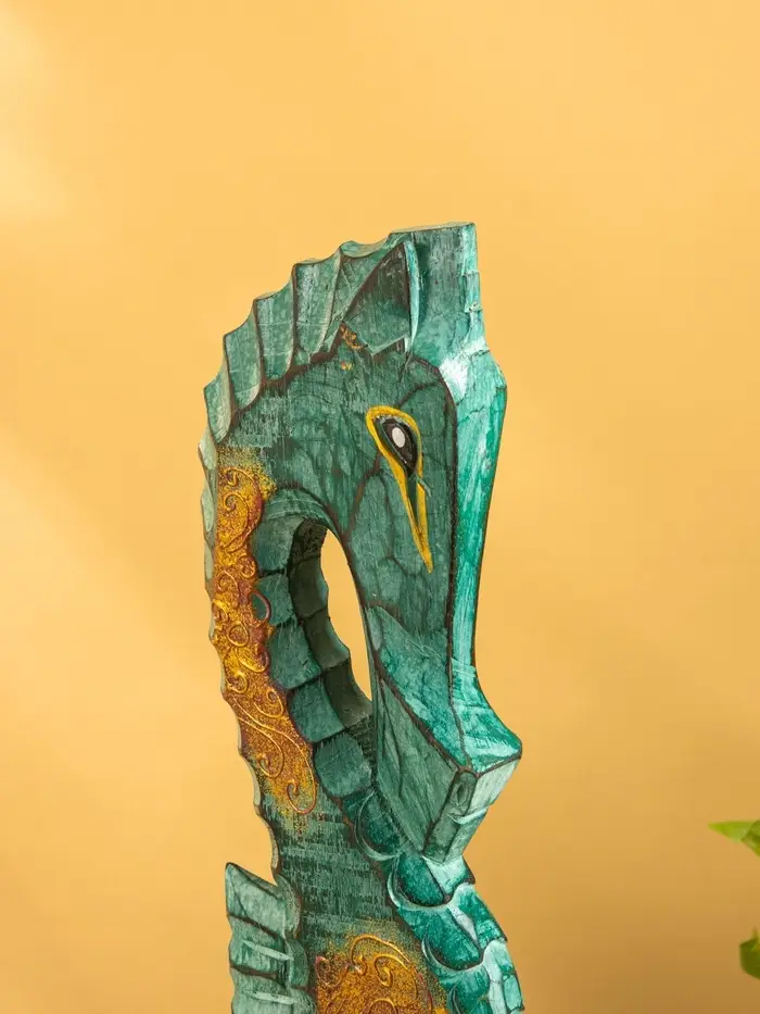 Сувенир интерьерный "Морской конь" 18х9х60 см, дерево, цв. зелёный