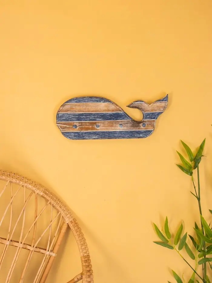Вешалка "Кит" с 3 крючками, дерево 44х2х18 см, цв. синий