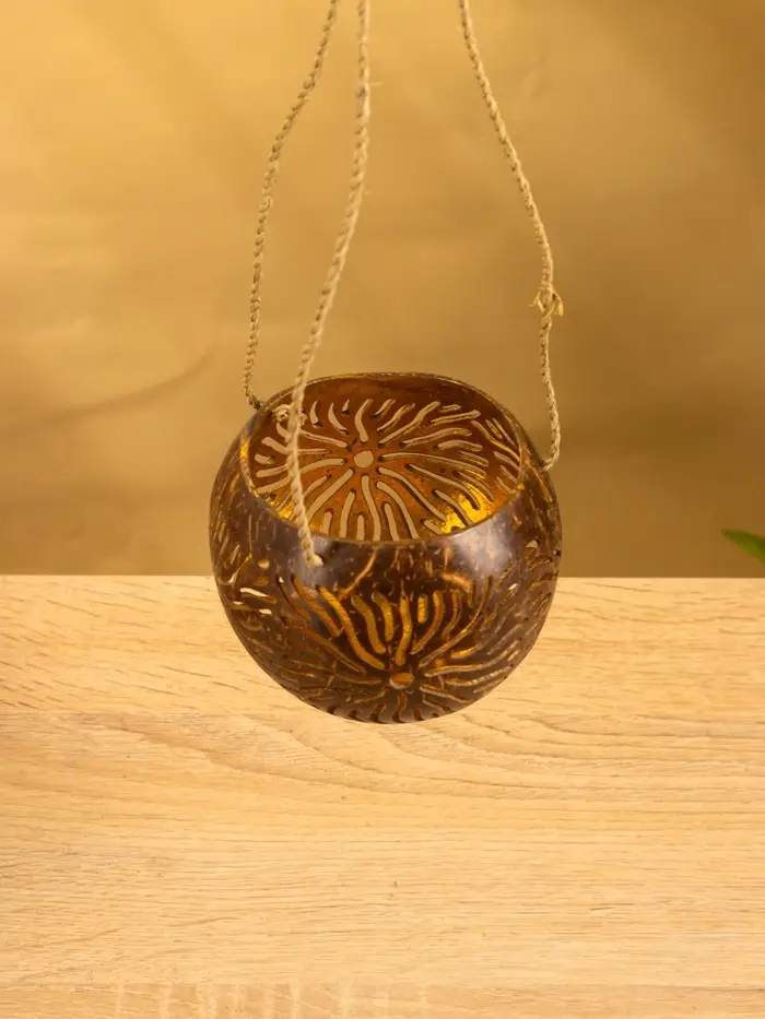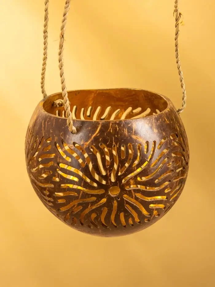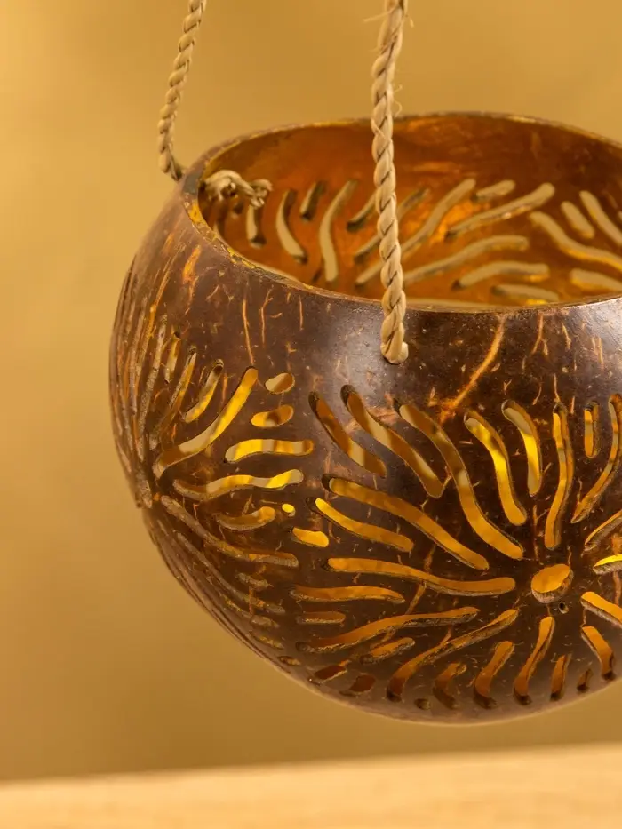 Подсвечник подвесной из кокоса, 9-12 см, коричневый