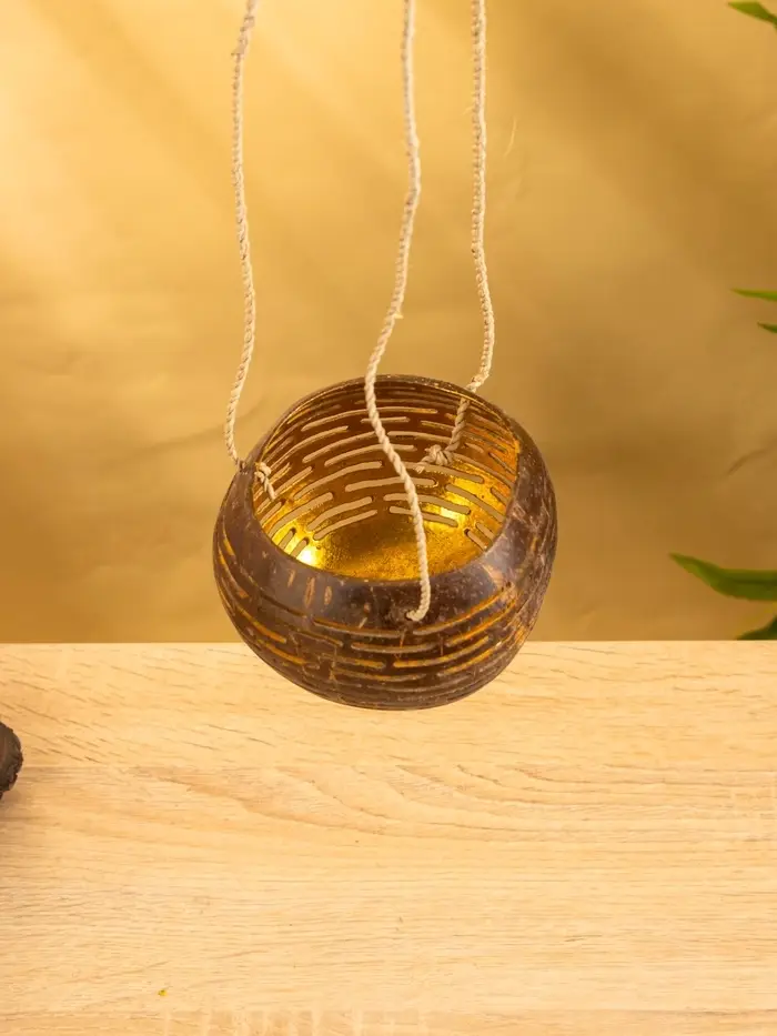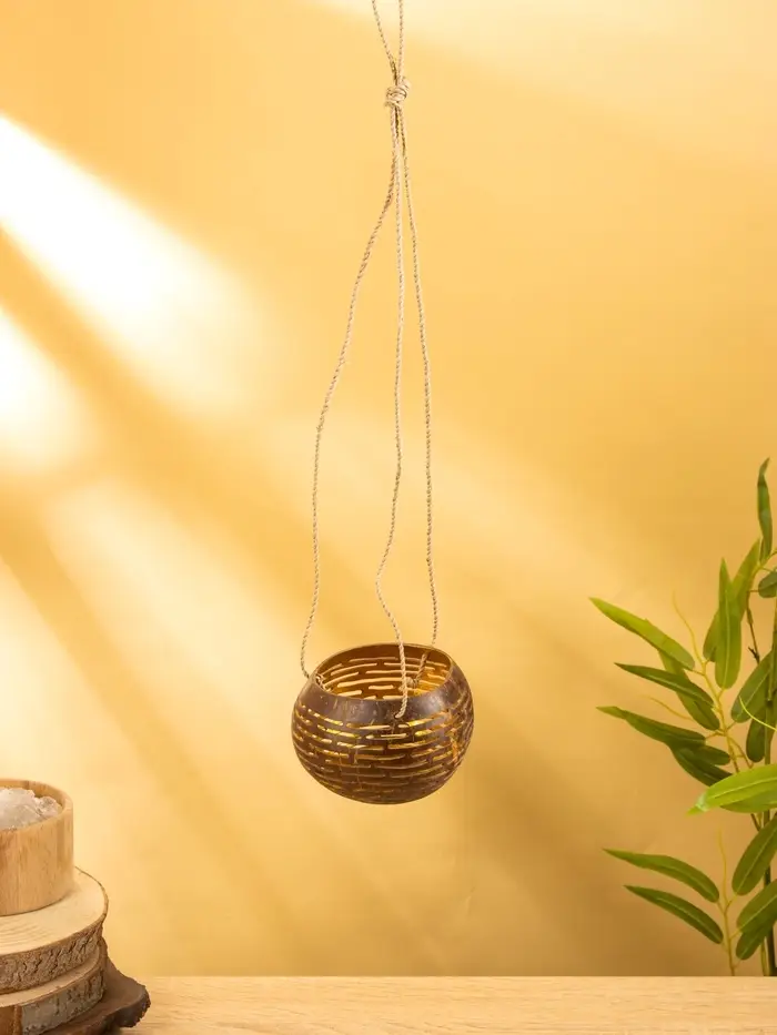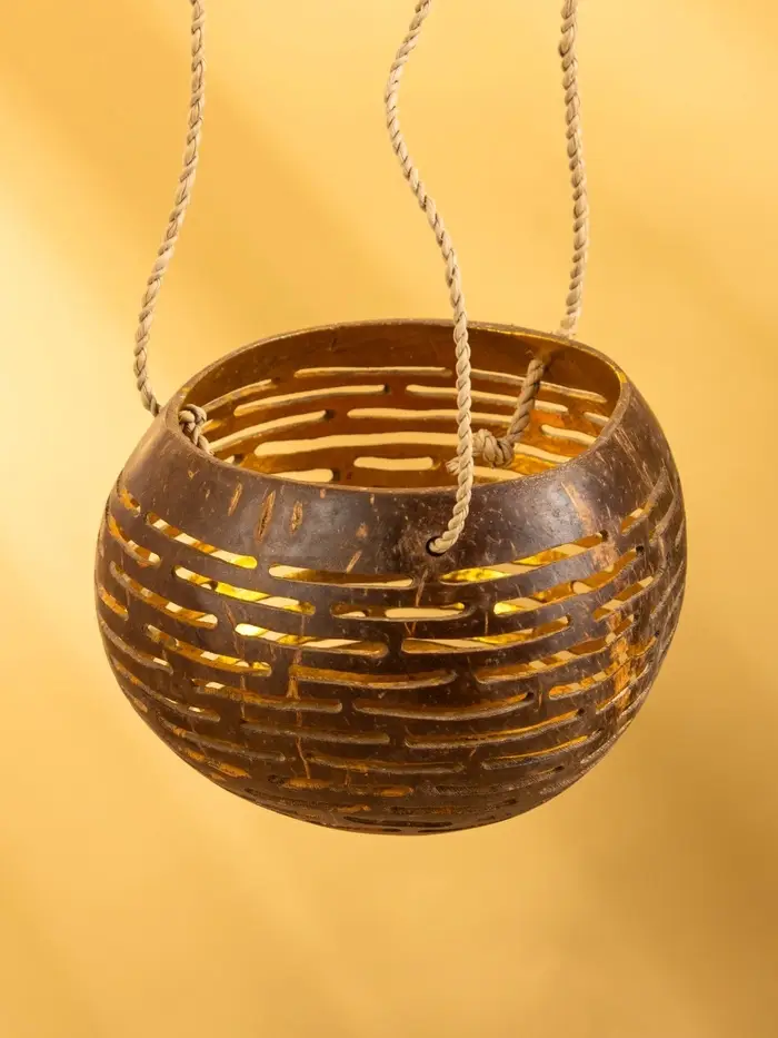Подсвечник подвесной из кокоса, 8-12 см, коричневый