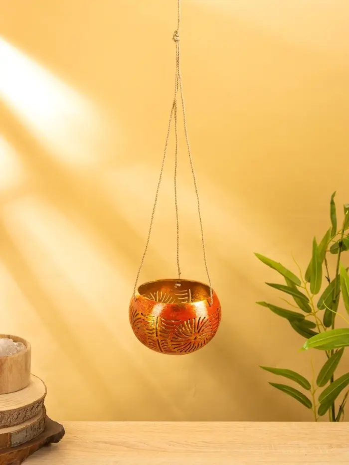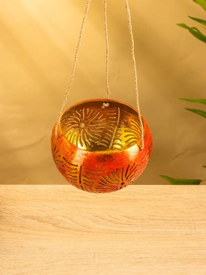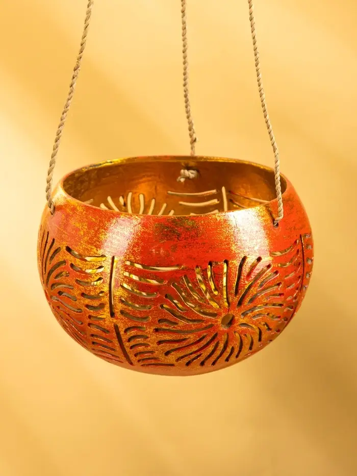 Подсвечник подвесной из кокоса, 11-14 см, красно-золотой