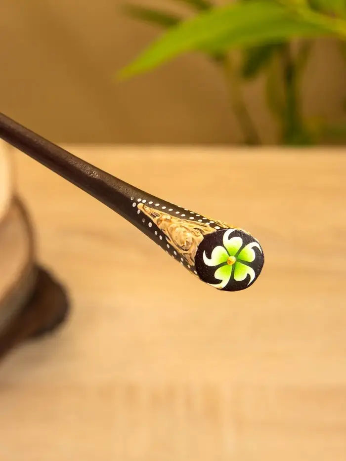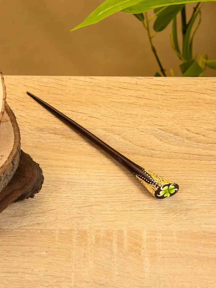 Заколка для волос "Цветок" дерево Албезия, 17 см, цв. чёрно-зелёный