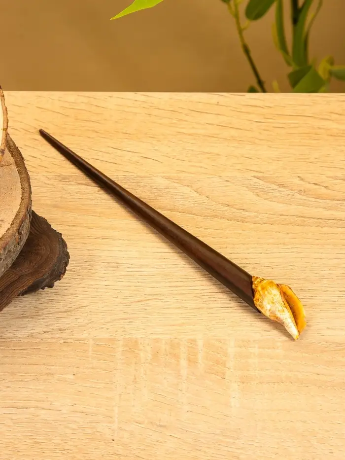 Заколка для волос фигурная, дерево Соно, ракушка, 20 см, цв. тёмно-коричневый
