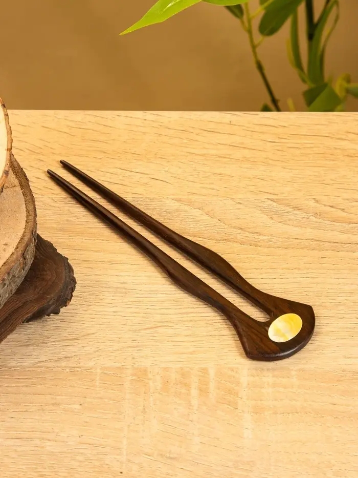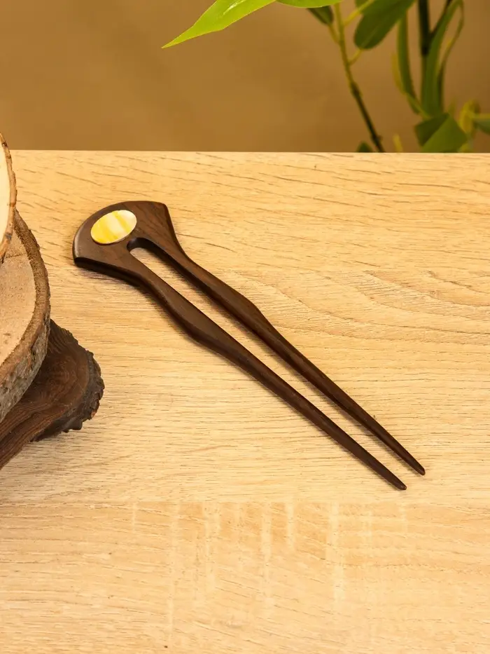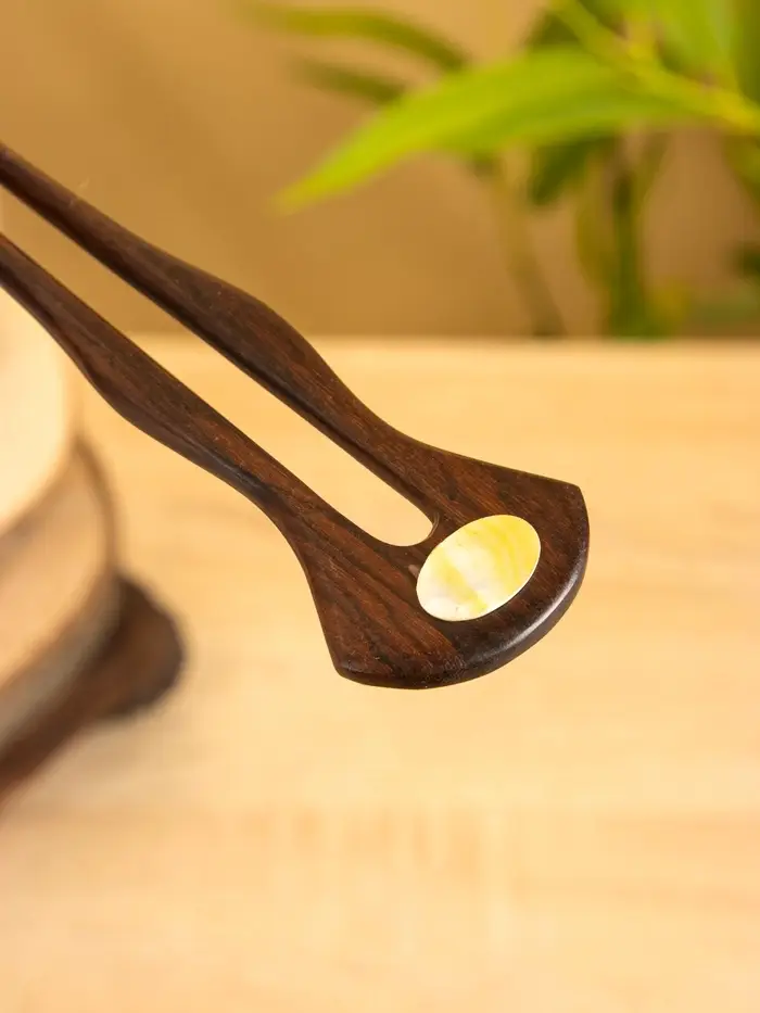 Заколка для волос фигурная, дерево Соно, ракушка, 17х4 см, цв. тёмно-коричневый