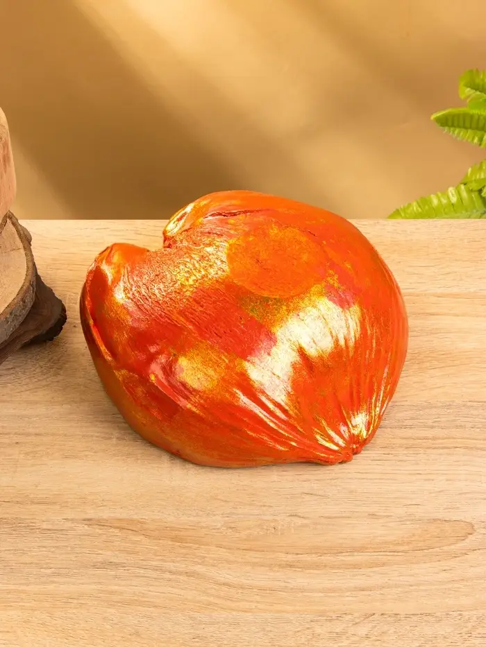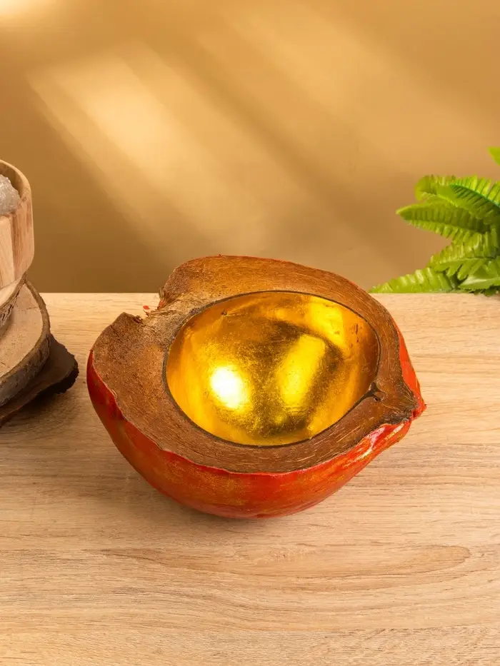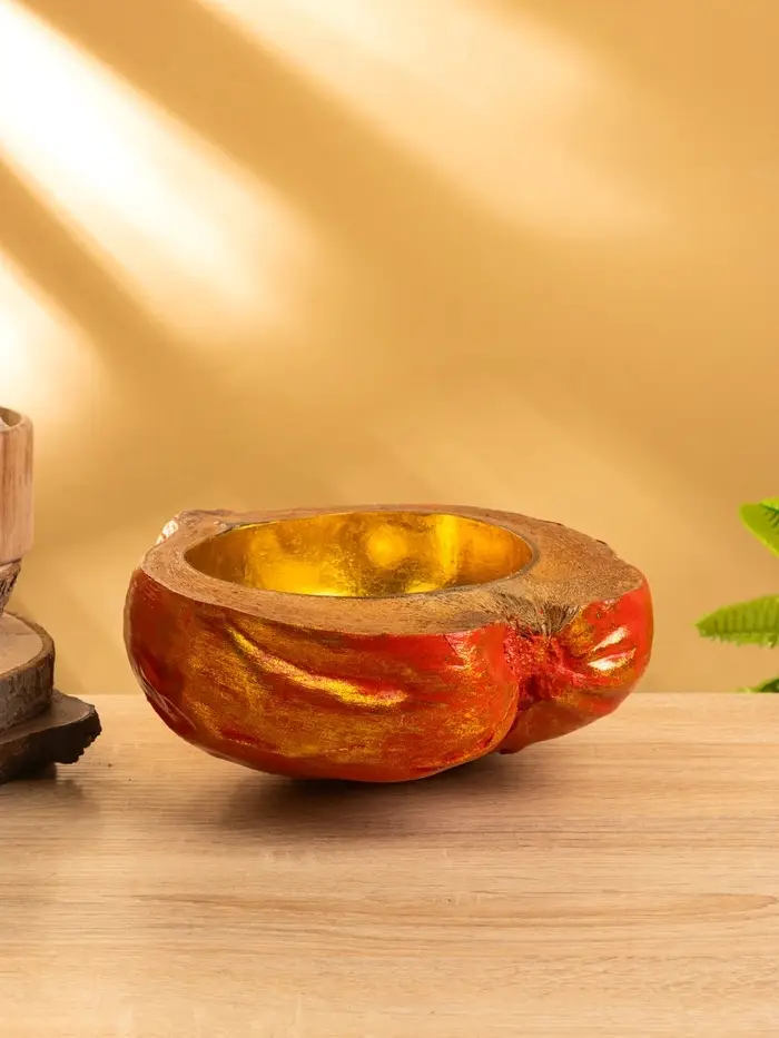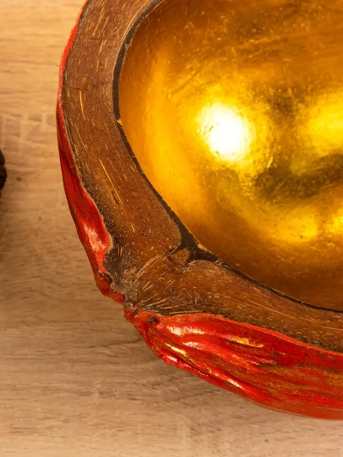 Чаша из кокоса, 24х22х10 см, красный-золотой