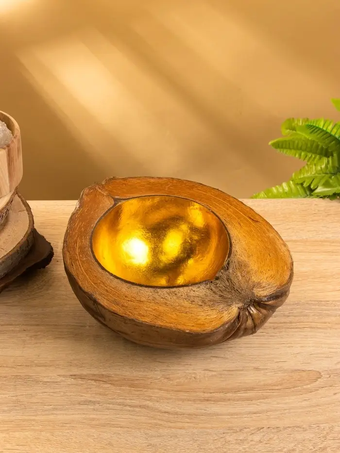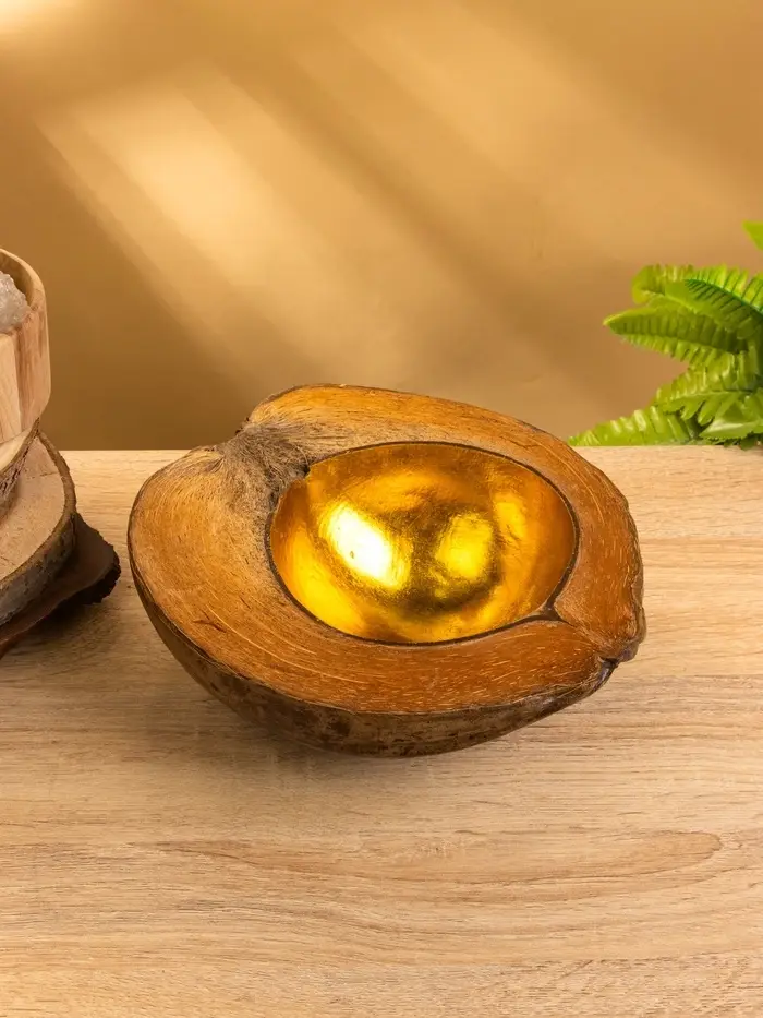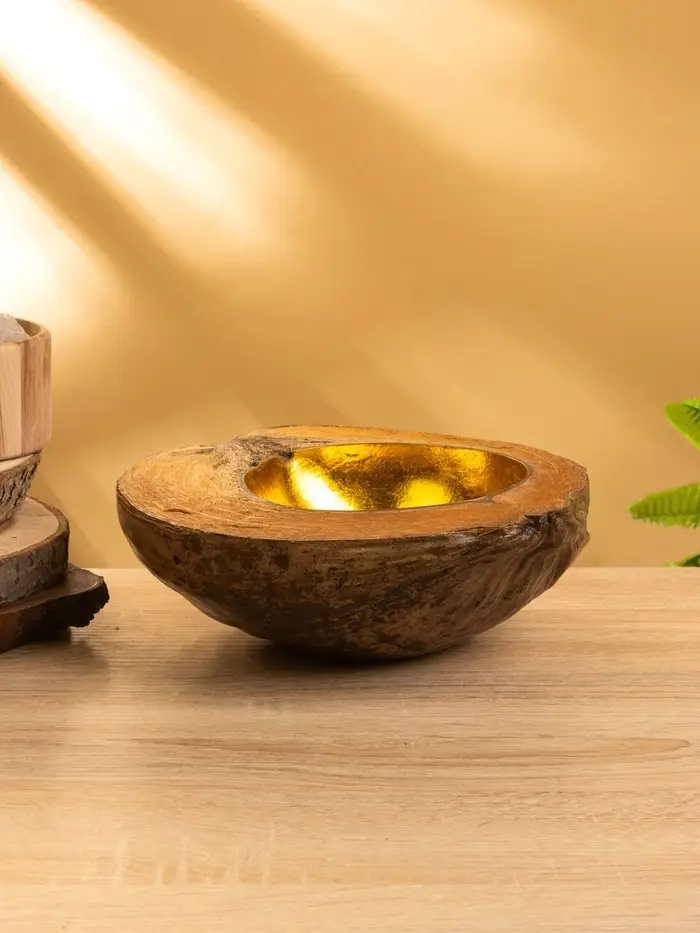 Чаша из кокоса, 22х24,5х9 см, коричнево-золотой