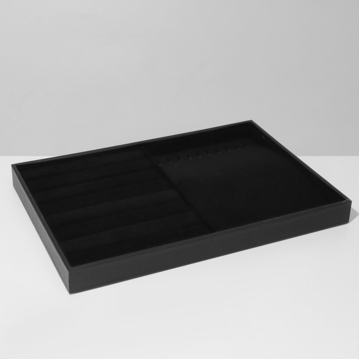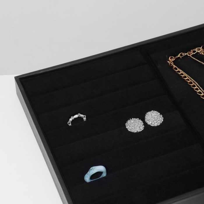 Подставка для украшений 10 крючков и 7 полос для колец, 35×24×3, цвет чёрный бархат