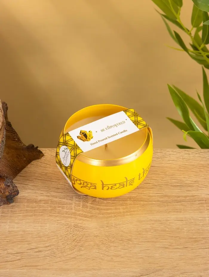 Свеча в чаше Yoga heal the soul жёлтая, соевый воск 200 гр 8,5х7 см