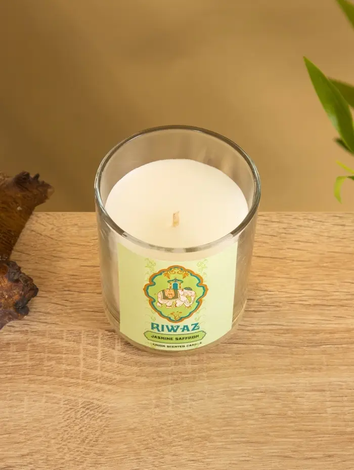 Свеча ароматическая в стекле "Жасмин и Шафран" соевый воск 120гр