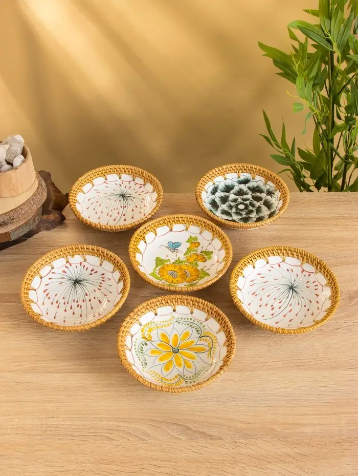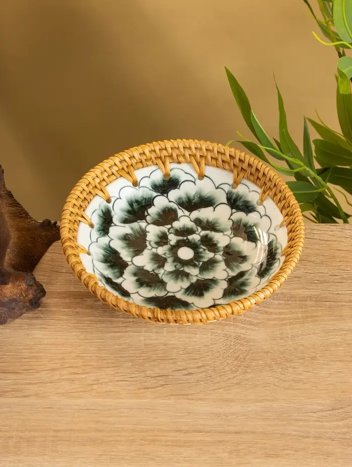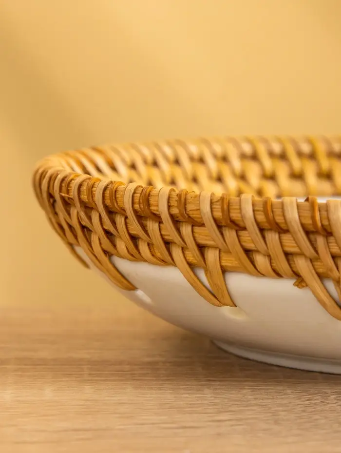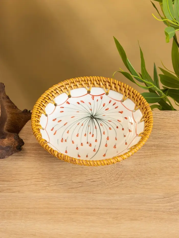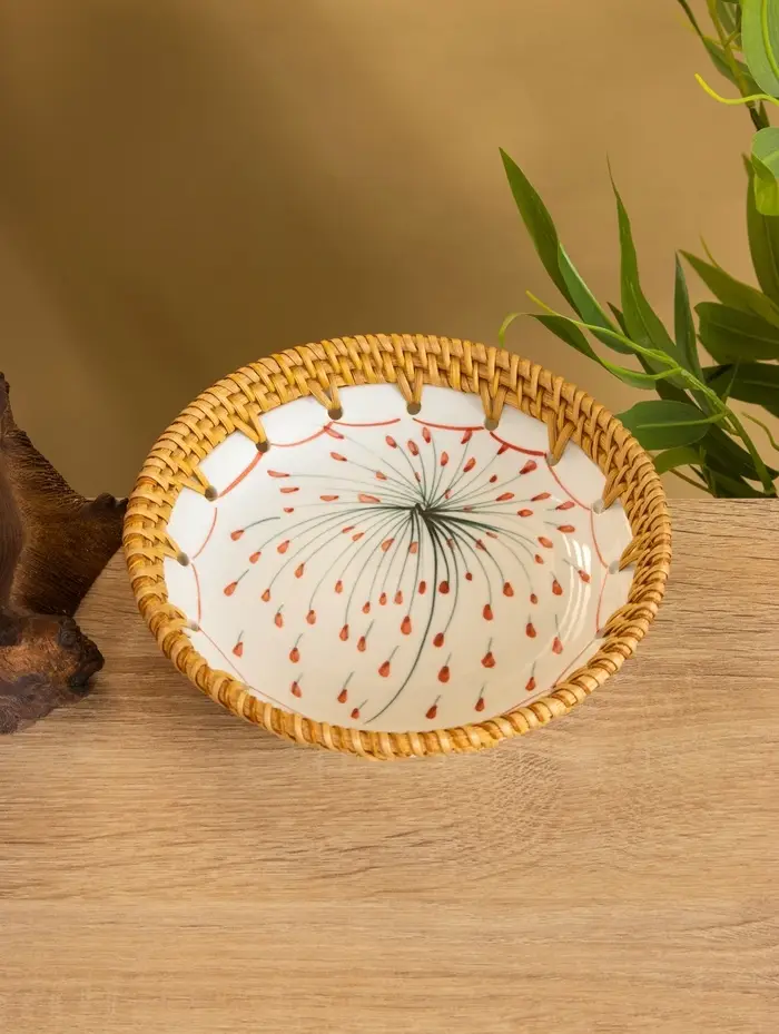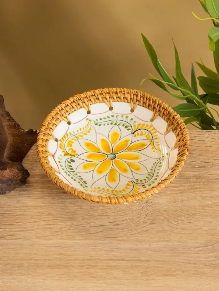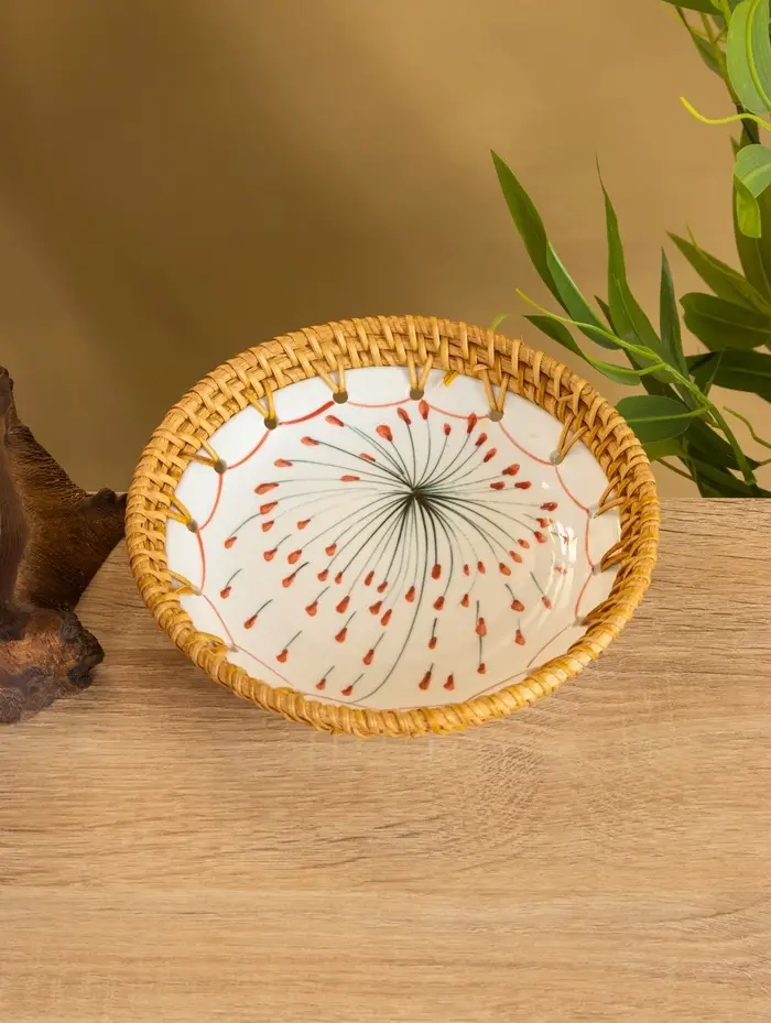 Тарелка керамическая с ротангом 18х18х3,7 см, МИКС