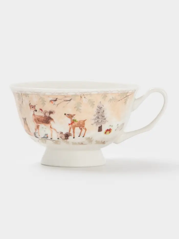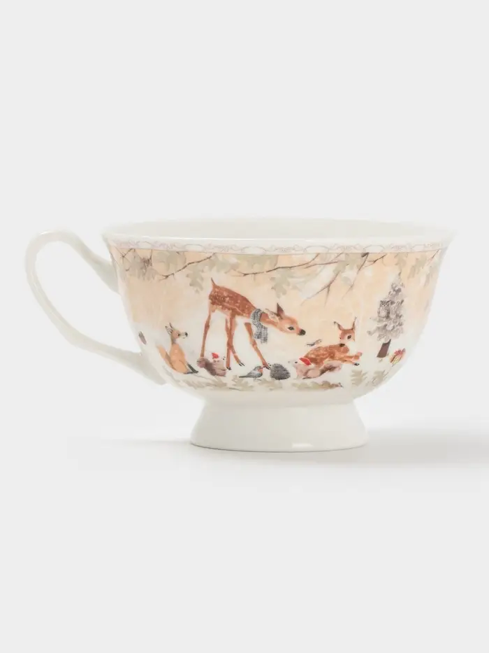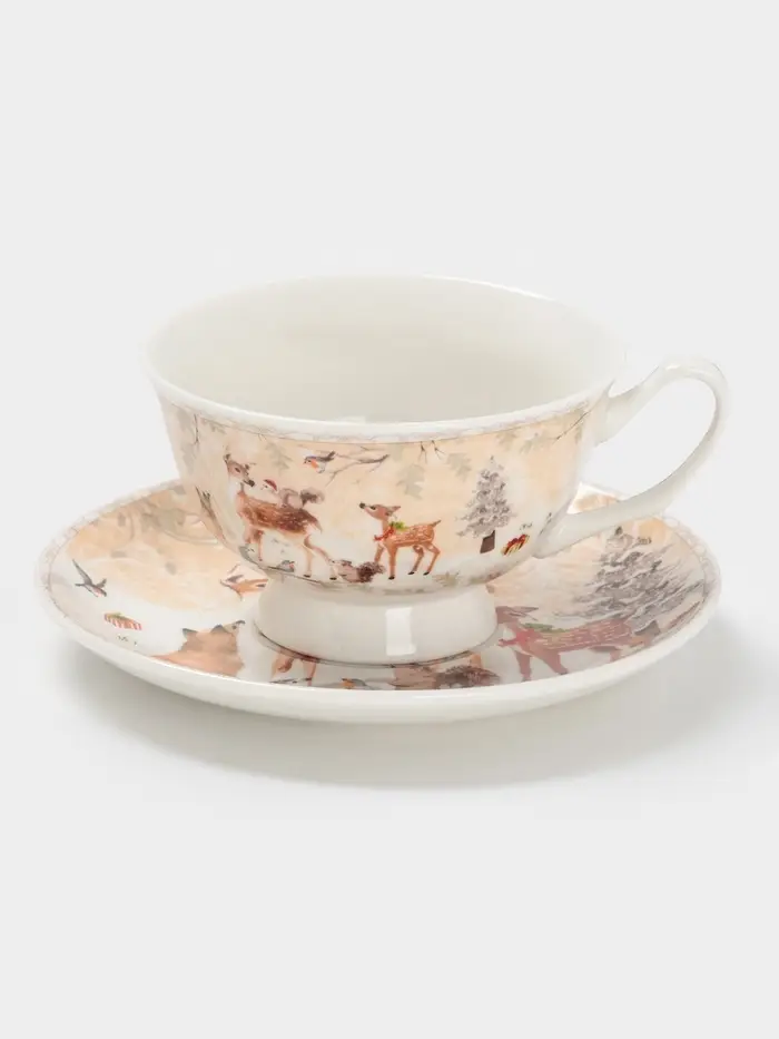 Чайная пара новогодняя «Лесное чудо», 2 предмета: чашка 180 мл, блюдце d=15 см, керамика, подарочная упаковка, бежевая