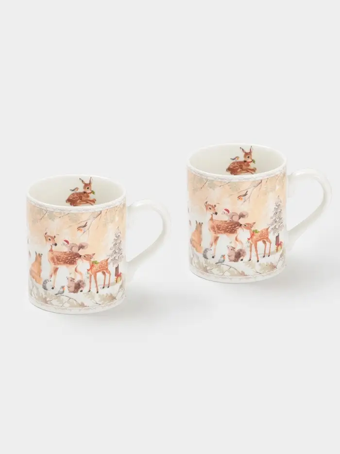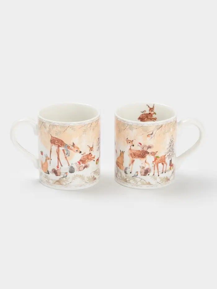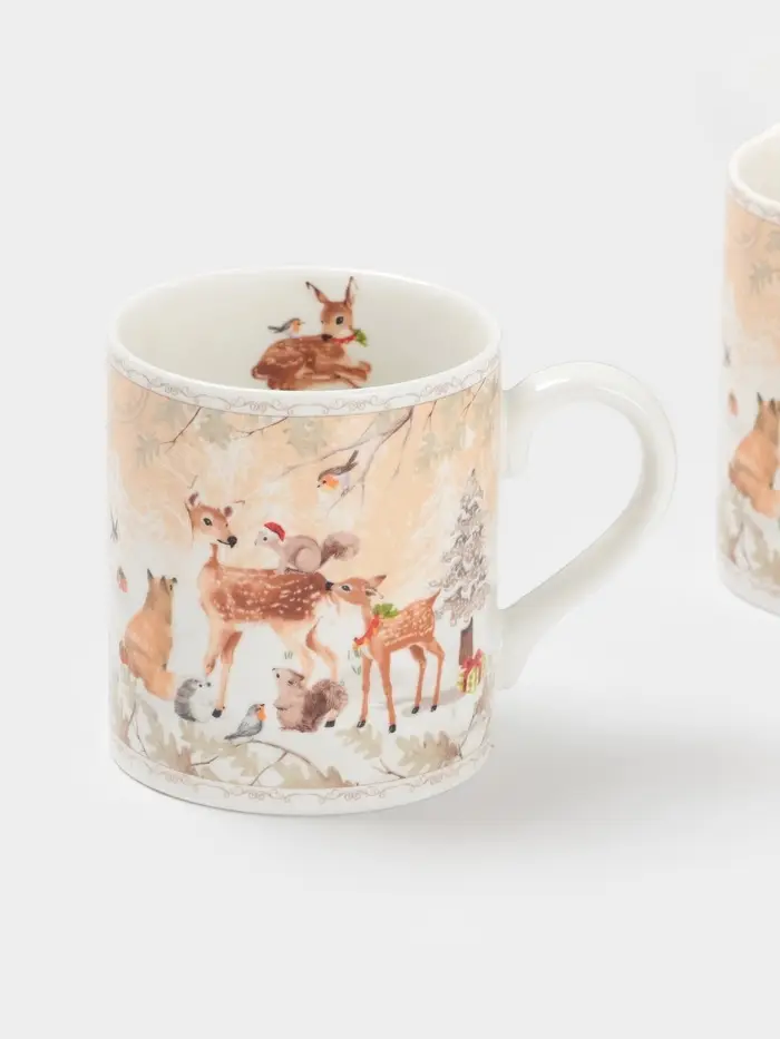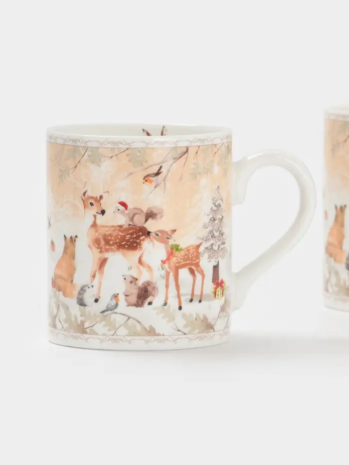 Набор кружек новогодних «Лесное чудо», 2 шт., 220 мл, керамика, подарочная упаковка, бежевый
