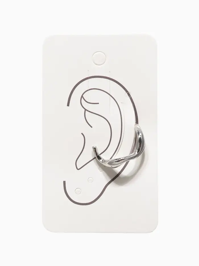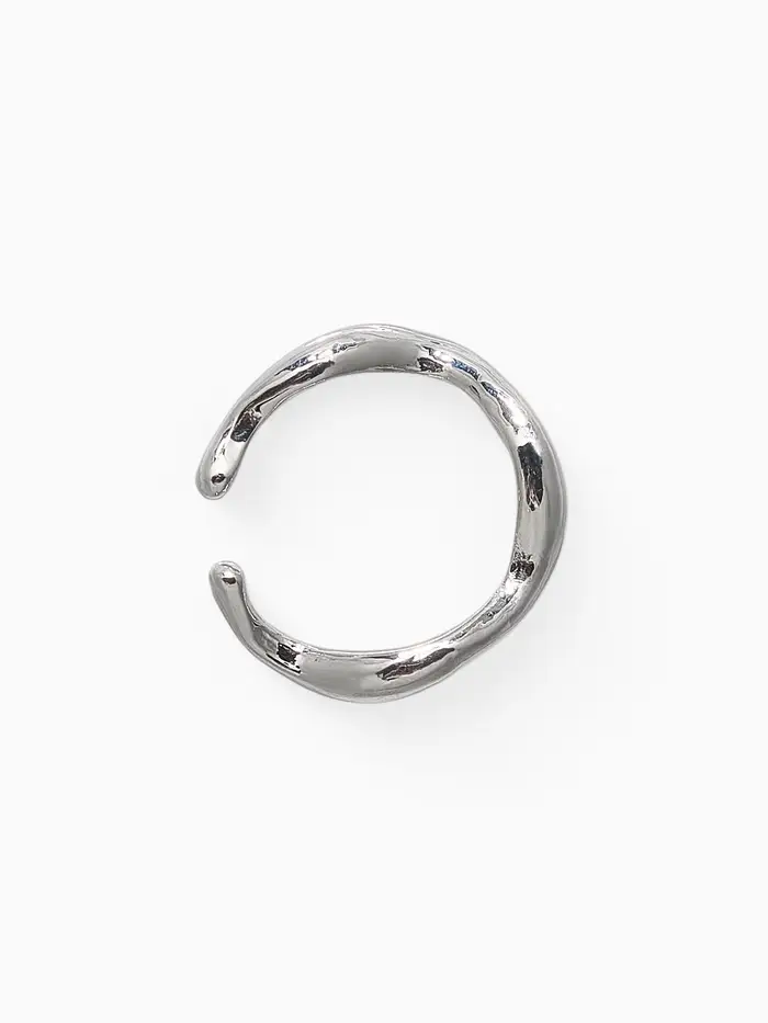 Серьга "Кафф" мятый металл, цвет серебро