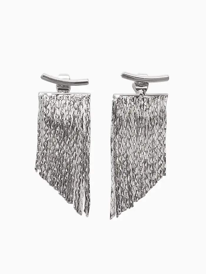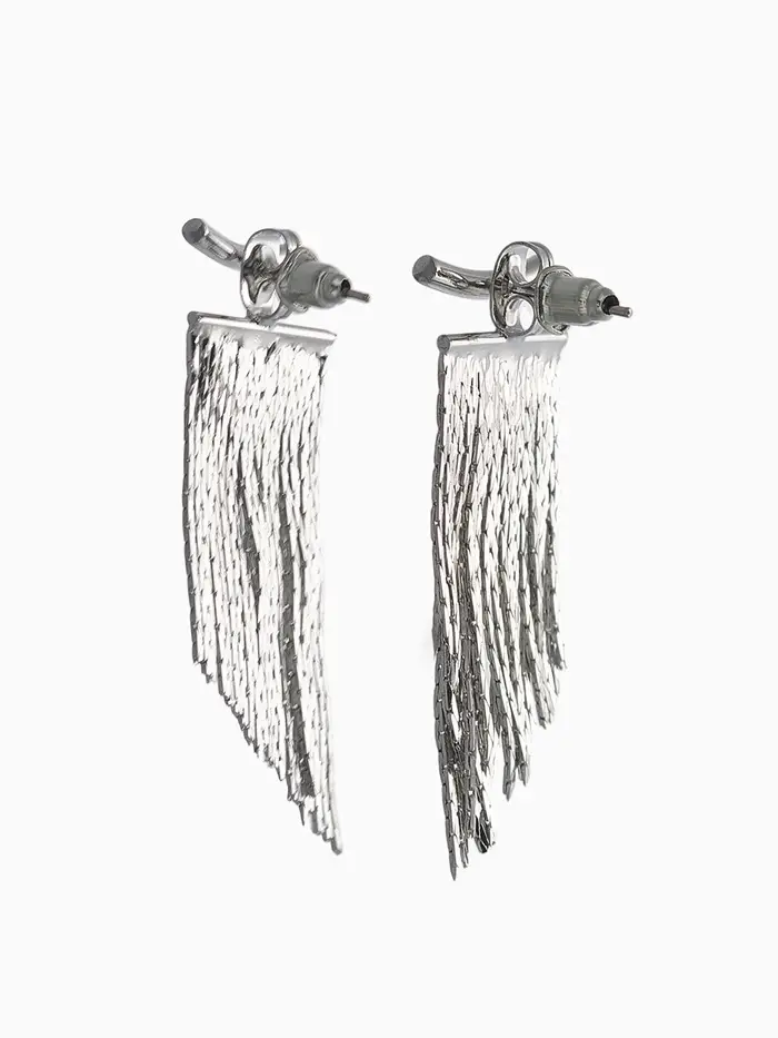 Серьги металл "Цепи" водопад, цвет серебро