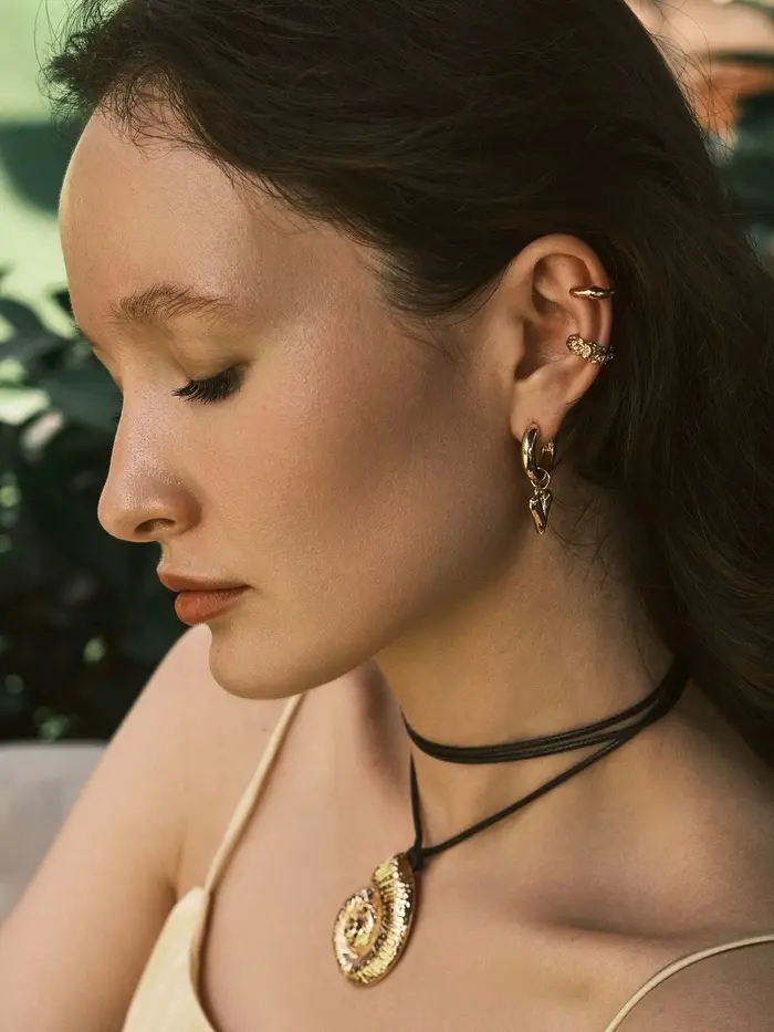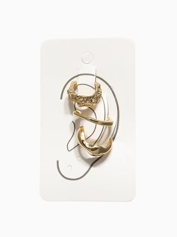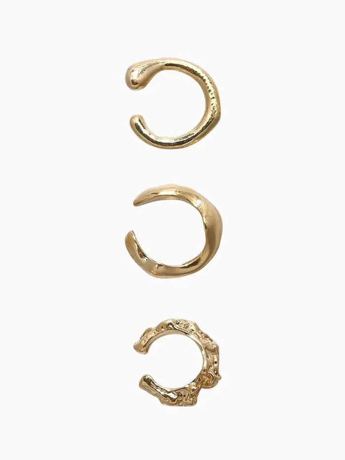 Серьги "Каффы" набор 3 шт., мятый, цвет золото