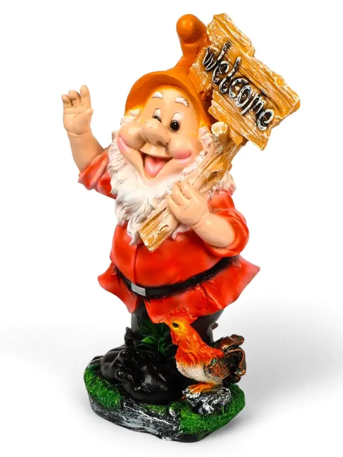 Садовая фигура из полистоуна «Гном с табличкой WELCOME с петухом», 61×23×36 см, МИКС