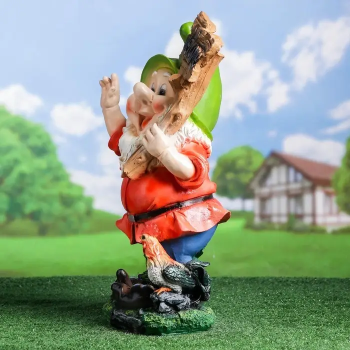 Садовая фигура из полистоуна «Гном с уткой», 49×18×24 см