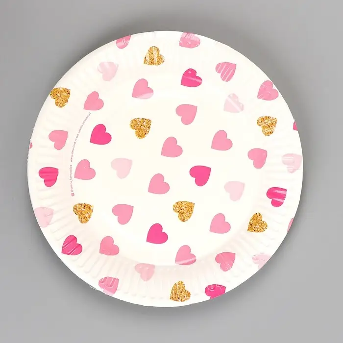Тарелка одноразовая бумажная "Сердца"