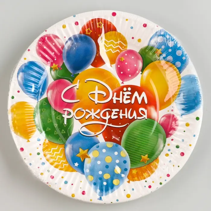 Тарелка одноразовая бумажная «С днем рождения», 18 см