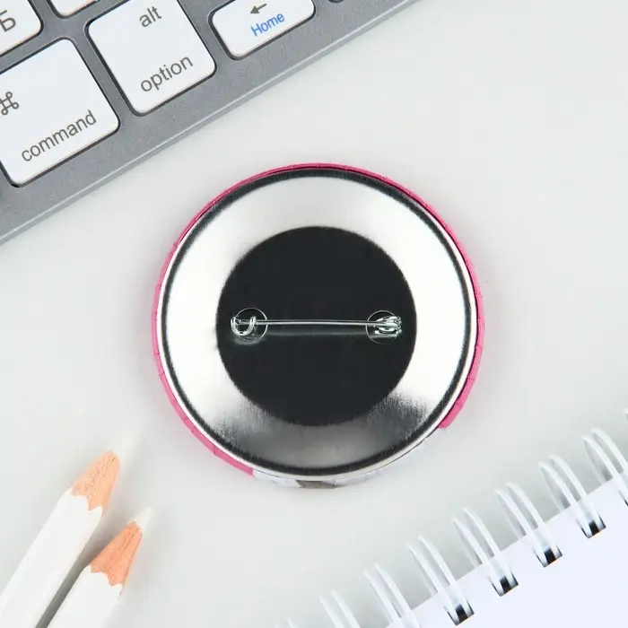Закатной значок - это металлическая основа круглой формы с дизайном.